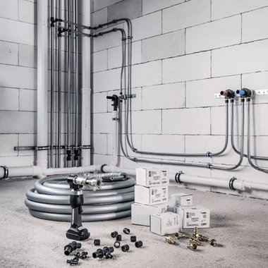 Einmal eingebaut, verschwinden die Rohrleitungen in Wand und Boden. Umso wichtiger ist es, bei der Wahl des Rohrsystems die Zukunft im Blick zu haben. Die Rohre bestehen aus dem hochdruckvernetzten Hightech-Werkstoff PE-Xa und sind die Basis für einen sicheren Einsatz über Jahrzehnte. Bei der absolut dichten Verbindungstechnik setzt REHAU auf äußerst robuste Materialien, die auch in der Raumfahrt zum Einsatz kommen. Diese sind besonders widerstandsfähig gegen Korrosion, selbst bei problematischen Trinkwasserqualitäten.